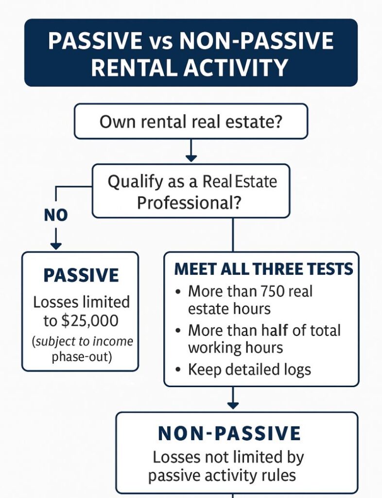 On Schedule E, you donโt just enter your rental income and expenses. One tiny detail can change the tax impact completely: ๐๐ต๐ฒ๐๐ต๐ฒ๐ฟ ๐๐ผ๐๐ฟ ๐ฟ๐ฒ๐ป๐๐ฎ๐น ๐ฎ๐ฐ๐๐ถ๐๐ถ๐๐ ๐ถ๐ ๐ฝ๐ฎ๐๐๐ถ๐๐ฒ ๐ผ๐ฟ ๐ป๐ผ๐ป-๐ฝ๐ฎ๐๐๐ถ๐๐ฒ.