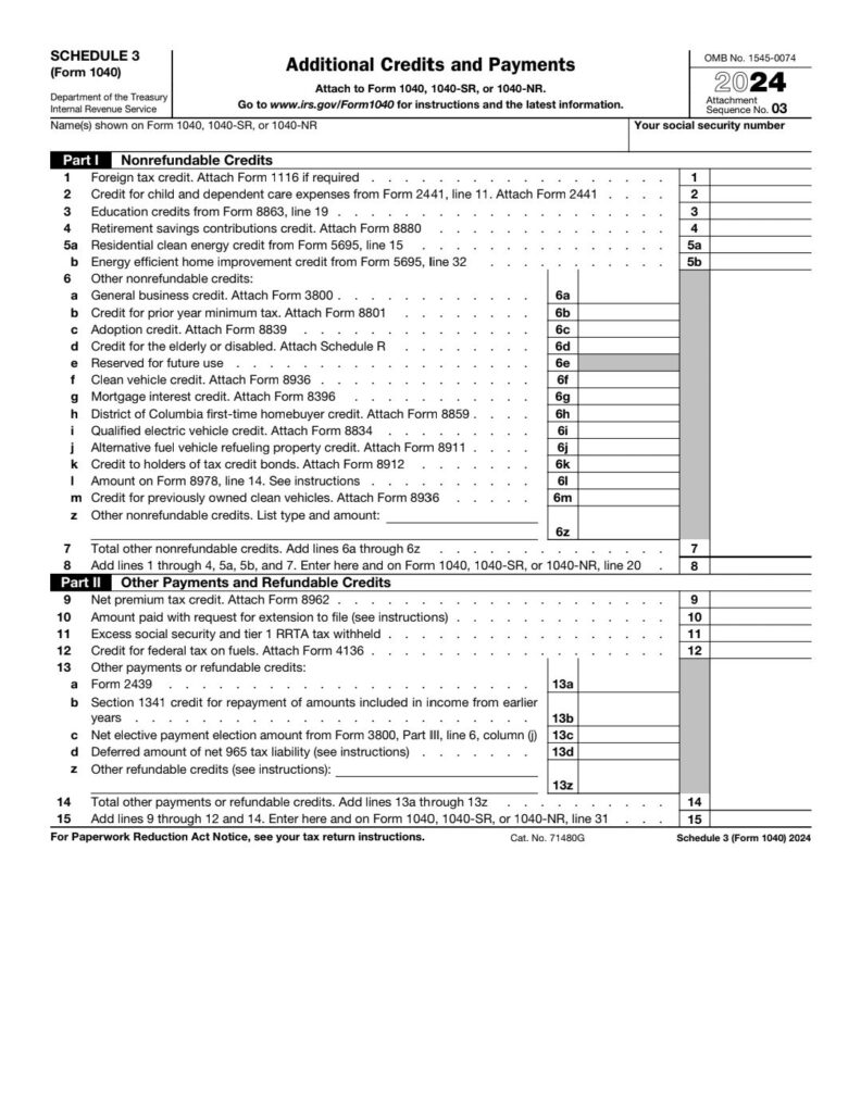 Deep Dive into Form 1040 Schedule 3: Credits and Payments